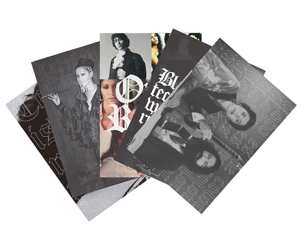 Edición limitada, tamaño A3, en ese estilo super pop macarra que huele a rebeldía adolescente y a habitación compartida con tu hermana o mejor amiga. Te llevas las cinco portadas completas, por delante y por detrás, pa’ que elijas mood cada vez que reorganices tu cuarto. Son un homenaje a las potras, las disidencias, las Grecas, la copla, el flamenco, el punk y todas esas genealogías que nos sostienen.