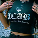TOP ACAB. (All Comadres Are Beautiful). Serigrafía con bases agua por ArteProvo. Diseño: Editorial AVENATE. 96% algodón/ 4% elastán. Parte superior corta. Cuello diseño nadadora. Costuras de doble pespi dobladillo, sisas y cuello. Etiqueta extraíble.