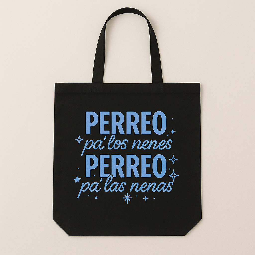 Camiseta serigrafiada a mano: «Perreo pa los nenes perreo pa las nenas». Merchan de La Emplumá, festival malagueño de contracultura crítica cuir celebrado en el CSA Las Vegas. Comprando esta prenda colaboras con el sostenimiento del proyecto <3 Diseño: Lucía Types. Serigrafía: InversA